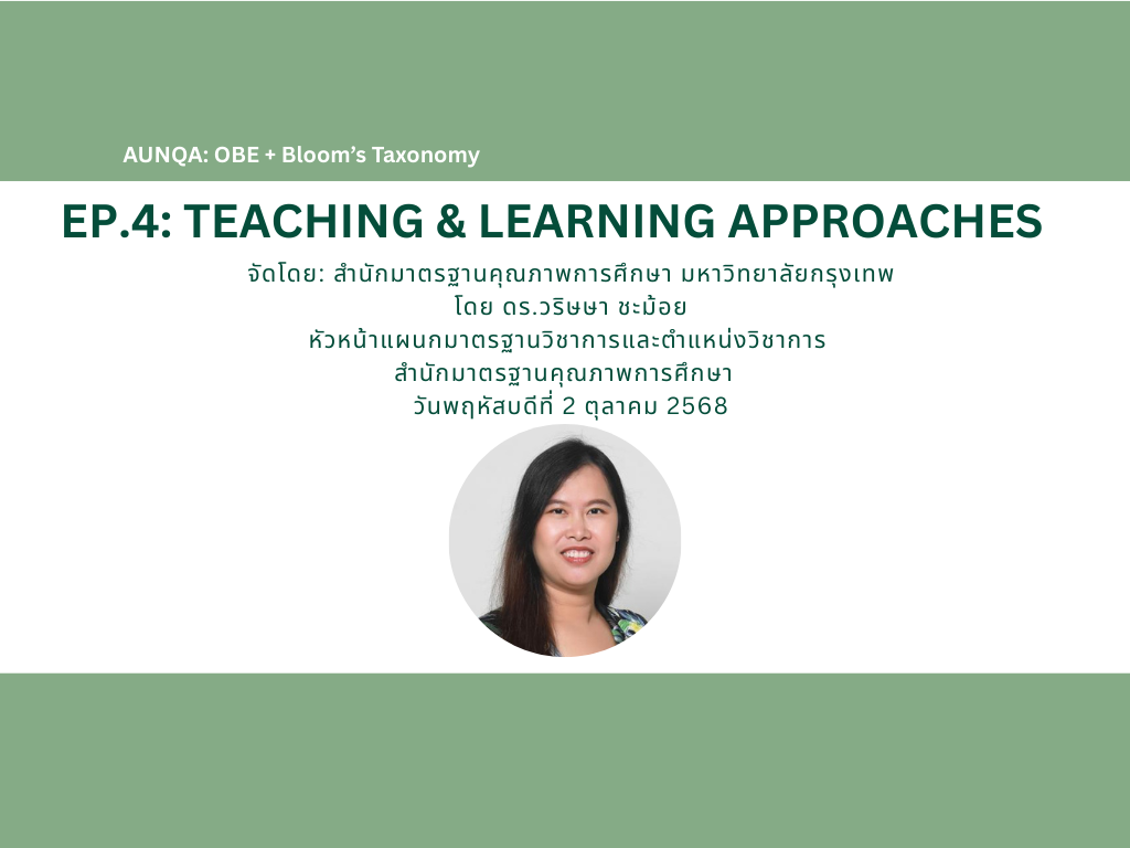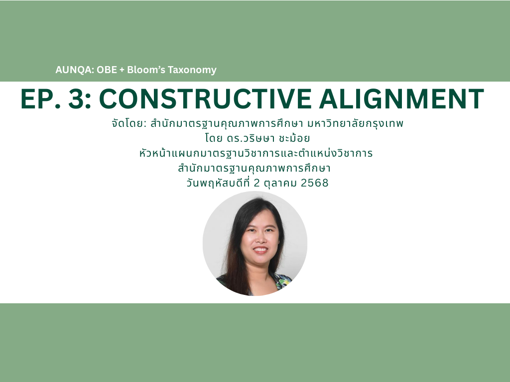 สำนักมาตรฐานคุณภาพการศึกษา มหาวิทยาลัยกรุงเทพ จัดอบรมเรื่อง AUN-QA: OBE + Bloom’s Taxonomy โดย ดร.วริษษา ชะม้อย หัวหน้าแผนกมาตรฐานวิชาการและตำแหน่งวิชาการ วันพฤหัสบดีที่ 2 ตุลาคม 2568