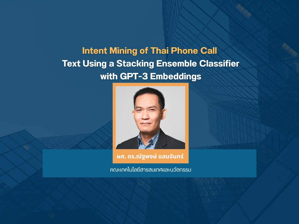 งานวิจัยเรื่อง Intent Mining of Thai Phone Call Text Using a Stacking Ensemble Classifier with GPT-3 Embeddings โดย ผศ. ดร.ณัฐพงษ์ แสนจันทร์ คณะเทคโนโลยีสารสนเทศและนวัตกรรม
