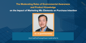 งานวิจัยเรื่อง The Moderating Roles of Environmental Awareness and Product Knowledge on the Impact of Marketing Mix Elements on Purchase Intention โดย รศ. ดร.สุชาติ ไตรภพสกุล คณะการสร้างเจ้าของธุรกิจและการบริหารกิจการ