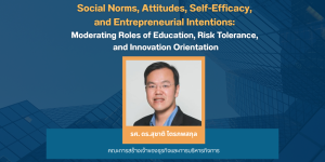 งานวิจัยเรื่อง Social Norms, Attitudes, Self-Efficacy, and Entrepreneurial Intentions: Moderating Roles of Education, Risk Tolerance, and Innovation Orientation โดย รศ. ดร.สุชาติ ไตรภพสกุล คณะการสร้างเจ้าของธุรกิจและการบริหารกิจการ